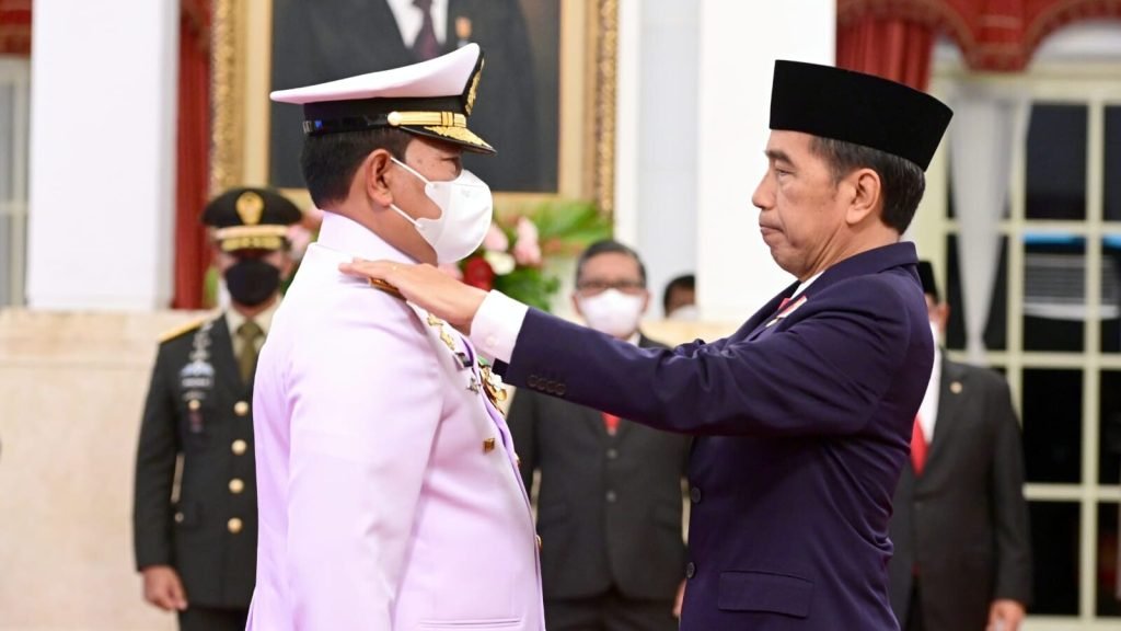 Presiden Joko Widodo melantik dan mengambil sumpah jabatan Laksamana TNI Yudo Margono sebagai Panglima Tentara Nasional Indonesia (TNI), pada Senin, 19 Desember 2022. Acara pelantikan berlangsung di Istana Negara, Jakarta, dengan menerapkan protokol kesehatan.