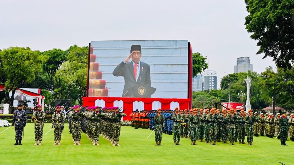 Presiden Joko Widodo bertindak selaku inspektur upacara dan memimpin upacara peringatan ke-77 Hari Tentara Nasional Indonesia (TNI) yang digelar di Halaman Istana Merdeka, Jakarta, pada Rabu, 5 Oktober 2022. Tema yang diangkat pada peringatan tahun ini adalah “TNI Adalah Kita”.