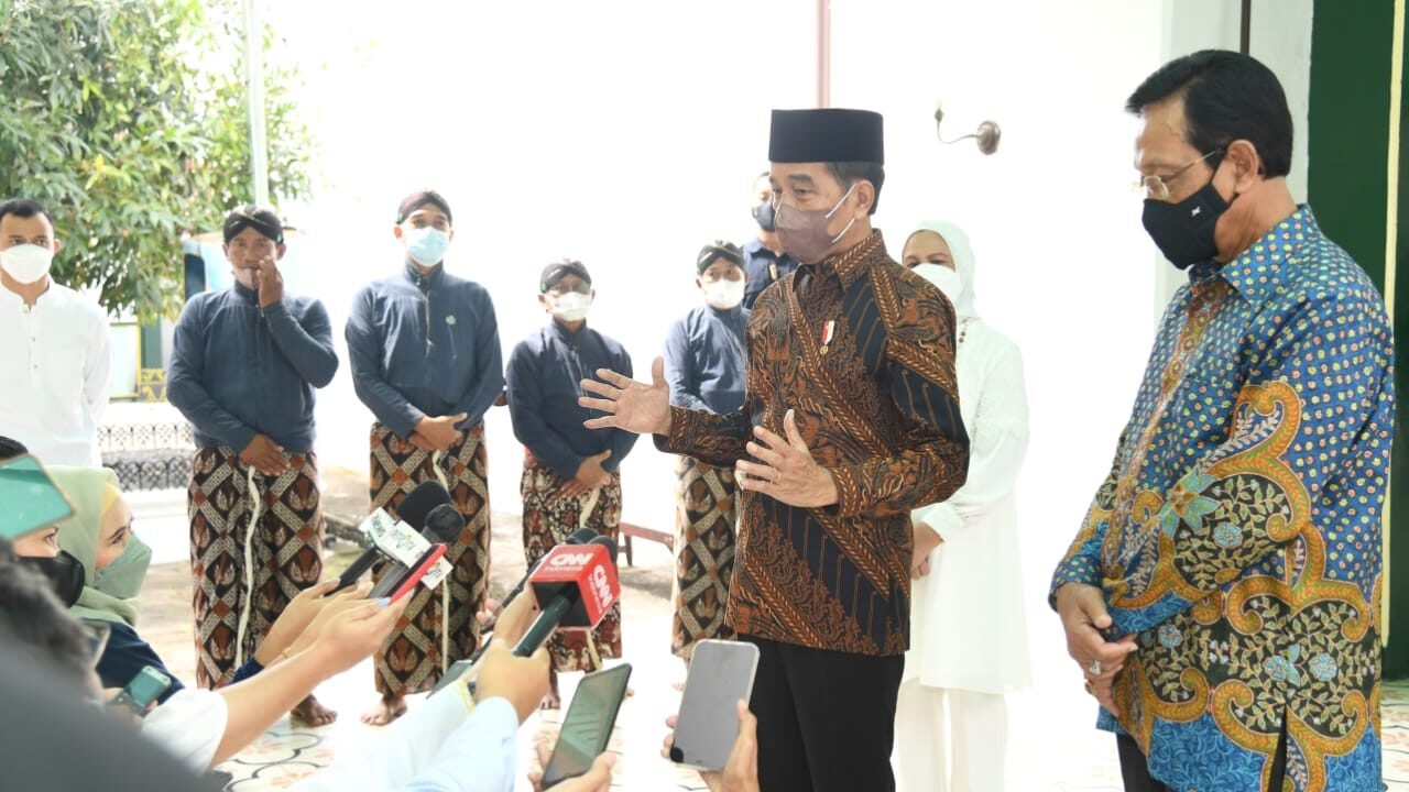“Alhamdulillah tadi salat ied di Gedung Agung, di Istana, berjalan dengan baik, semuanya lancar dan alhamdulillah kita semuanya bisa melaksanakan Idulfitri tahun ini. Tadi pagi juga kita pantau di semua kota, semua provinsi, semuanya berjalan dengan baik, alhamdulillah” ungkap Presiden dalam keterangannya usai bersilaturahmi di Keraton Yogyakarta.