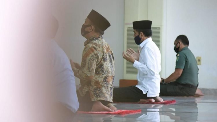 Kepala Negara yang didampingi Menteri Sekretaris Negara Pratikno tiba sekitar pukul 11.50 WIB. Presiden Jokowi yang telah berwudhu kemudian dicek suhu tubuhnya dan membasuh tangan dengan hand sanitizer sebelum masuk ke dalam masjid.