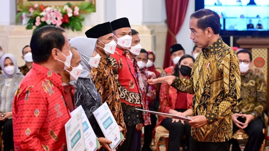 Presiden Joko Widodo menyerahkan kredit usaha rakyat (KUR) klaster dan menyalurkan dana melalui Lembaga Pengelola Dana Bergulir Koperasi dan Usaha Mikro, Kecil, dan Menengah (LPDB KUMKM) di Istana Negara, Jakarta, pada Senin, 19 Desember 2022. Pada kesempatan tersebut, Presiden menyerahkan KUR klaster dan menyalurkan dana melalui LPDB KUMKM kepada sejumlah perwakilan penerima yang hadir di Istana Negara.