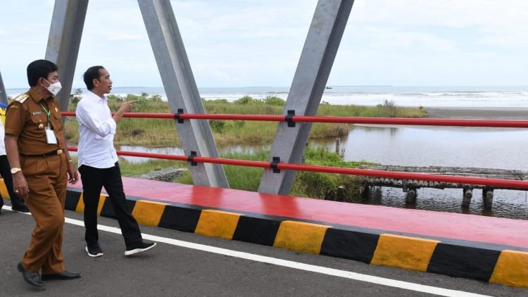 Presiden Joko Widodo melanjutkan kunjungan kerjanya di Provinsi Sumatra Utara dengan meninjau infrastruktur Jalan Nasional Lingkar Nias dan Jembatan Idano Sibolou di Kabupaten Nias Barat, pada Rabu, 6 Juli, 2022.