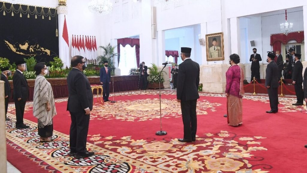 Presiden Jokowi melantik 12 duta besar luar biasa dan berkuasa penuh (dubes LBBP) untuk sejumlah negara sahabat di Istana Negara, Jakarta, Senin, 26 Oktober 2020.