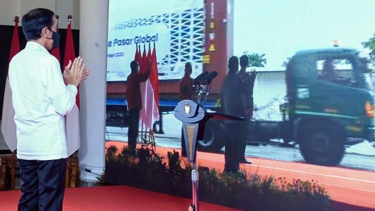 Presiden Jokowi melepas ekspor ke Pasar Global Tahun 2020 secara virtual di Istana Kepresidenan Bogor, Provinsi Jawa Barat, Jumat, 4 Desember 2020.