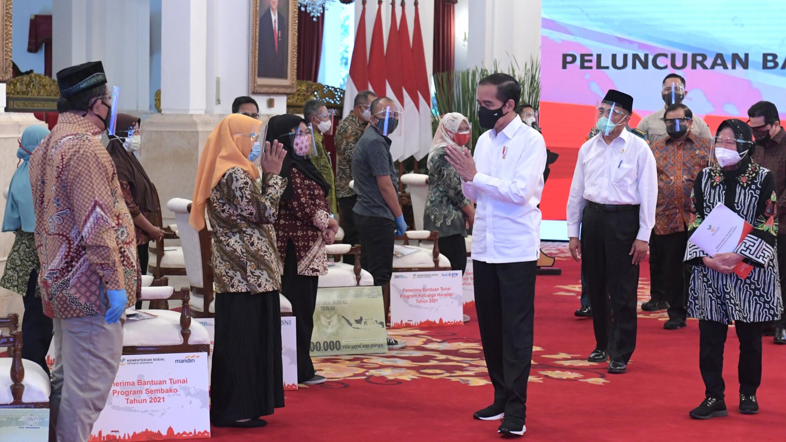 Presiden Jokowi meluncurkan program Bantuan Tunai Se-Indonesia Tahun 2021 di Istana Negara, Jakarta yang diikuti oleh penerima lainnya secara virtual di masing-masing provinsi.