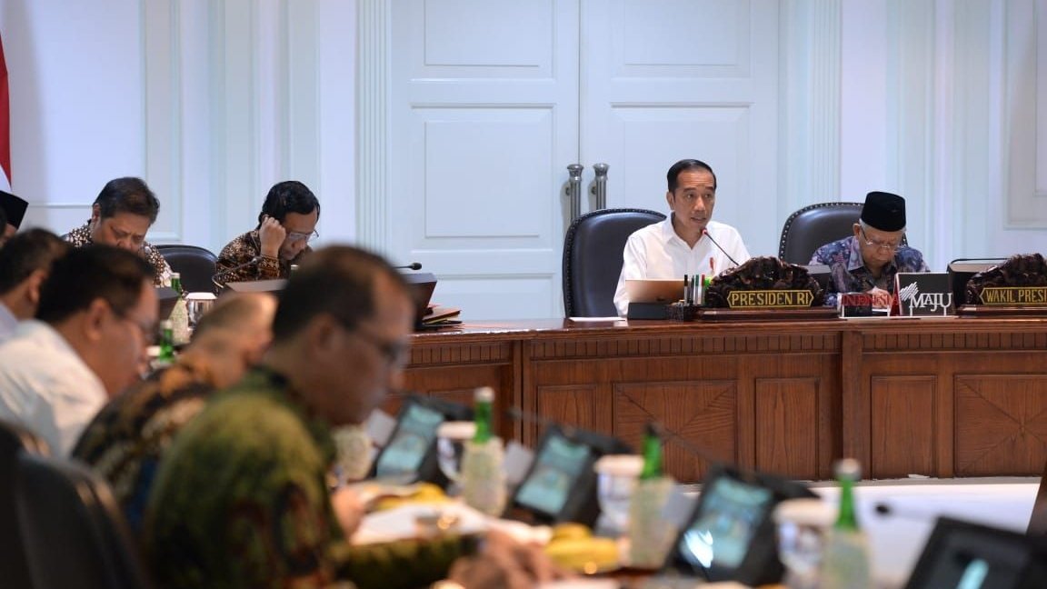 Presiden Jokowi memimpin rapat terbatas terkait akselerasi program tol laut di Kantor Presiden, Jakarta, Kamis, 5 Maret 2020.
