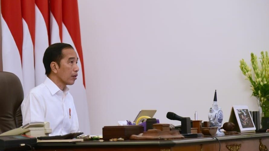 Presiden Jokowi memimpin rapat terbatas terkait Pembiayaan BPJS Kesehatan melalui telekonferensi dari Istana Merdeka, Jakarta, Selasa, 24 Maret 2020.