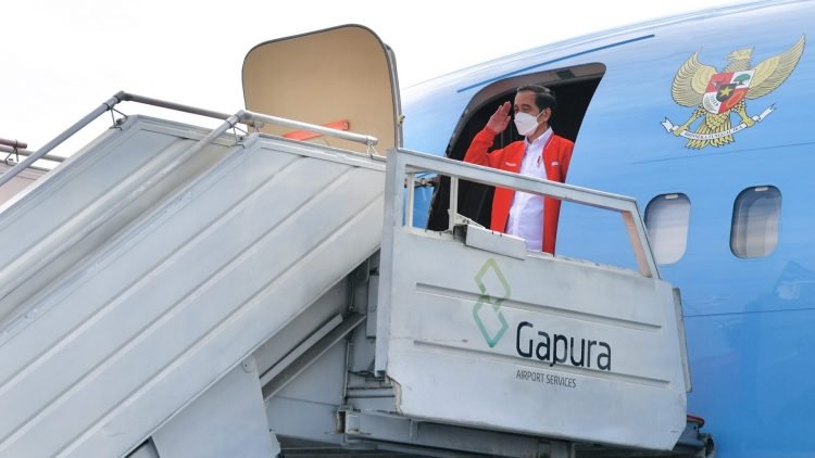Presiden Joko Widodo Bertolak Ke Sumatera Selatan Dalam Rangka Kunjungan Kerja pada Selasa, 26 Januari 2021 di Bandara Halim Perdanakusuma, Jakarta Timur.
