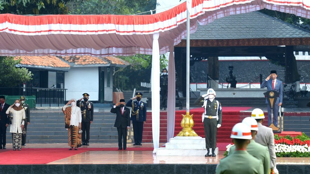 Presiden Joko Widodo memimpin upacara peringatan Hari Kesaktian Pancasila Tahun 2021 yang digelar di Monumen Pancasila Sakti, Lubang Buaya, Jakarta Timur, pada Jumat, 1 Oktober 2021. Upacara peringatan dihadiri oleh sejumlah perangkat upacara terbatas dengan menerapkan protokol kesehatan ketat.
