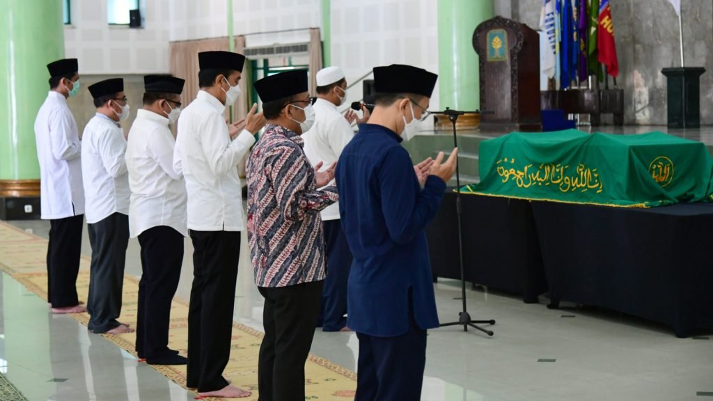 Presiden Joko Widodo pada Senin pagi, 1 Maret 2021, datang bertakziah ke tempat duka mendiang Artidjo Alkostar di Masjid Ulil Albab, Kampus Terpadu Universitas Islam Indonesia (UII), Yogyakarta.