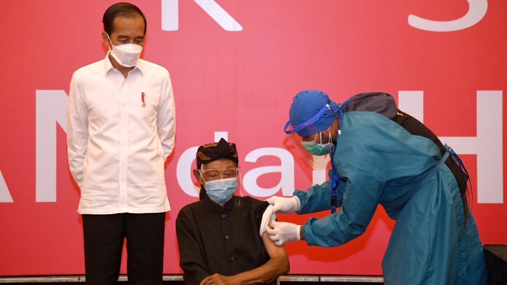 Presiden Republik Indonesia, Joko Widodo Tinjau Vaksinasi Massal di Kota Bogor, Provinsi Jawa Barat pada Jumat, 19 Maret 2021.