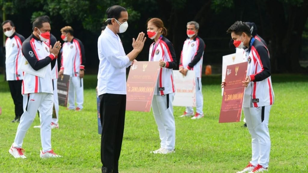 Atas prestasi yang diraih para atlet Indonesia, pemerintah memberikan penghargaan berupa bonus. Peraih medali emas Olimpiade Tokyo, pasangan ganda putri bulu tangkis Greysia Polii dan Apriyani Rahayu, masing-masing mendapatkan bonus sebesar Rp5,5 miliar.