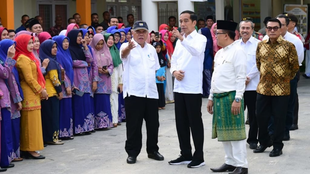 Turut mendampingi Presiden saat meninjau MTsN 3 Kota Pekanbaru antara lain Menteri PUPR Basuki Hadimuljono, Kepala Staf Kepresidenan Moeldoko, dan Gubernur Riau Syamsuar.