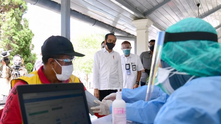 Presiden Tinjau Vaksinasi Massal Pedagang Dan Pekerja Sektor Informal Di Yogyakarta