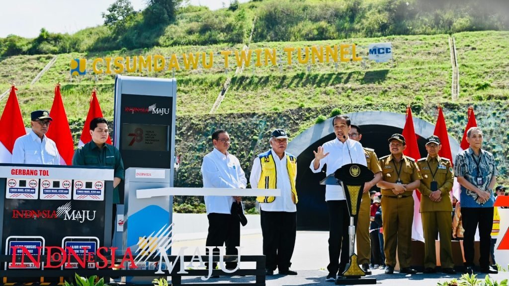 “Ini di seluruh Indonesia tidak ada jalan tol yang melewati dua terowongan seperti yang kita lihat pada pagi hari ini,” ucap Presiden.