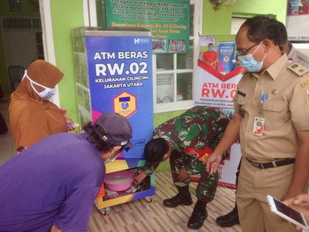 Di tengah kondisi pandemi COVID-19, Kelurahan Cilincing, Jakarta Utara, mengembangkan program ketahanan pangan dengan membuat ATM Beras.