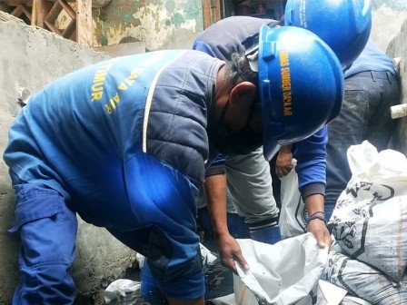 Saluran drainase sepanjang 300 meter di Jl Bunga Dalam I, RW 09, Kelurahan Palmeriam, Matraman, Jakarta Timur dikuras petugas.
