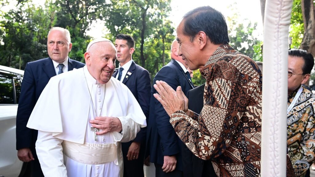 Presiden Joko Widodo menyambut langsung kedatangan Yang Teramat Mulia Bapa Suci Paus Fransiskus dalam Misa Suci yang berlangsung di Stadion Utama Gelora Bung Karno (GBK), Jakarta, pada Kamis, 5 September 2024. Acara yang dihadiri ribuan umat Katolik dari seluruh penjuru Indonesia ini menjadi momen bersejarah dan penuh sukacita.