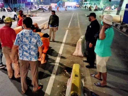Yuni mengungkapkan, petugas merapikan beton separator pembatas jalur Transjakarta yang sempat tergeser serta memperbaiki tiang rambu lalu lintas di sepanjang jalan tersebut.