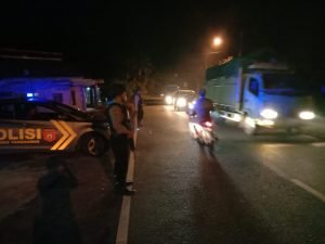 TANGGAMUS, POLDA LAMPUNG – Patroli bersinggungan dilaksanakan Sat Sabhara dan Sat Lantas Polres Tanggamus di jalan lintas barat (Jalinbar) Tanggamus sebagai upaya pencegahan gangguan Kamtimbas, Minggu (19/1/20) malam.