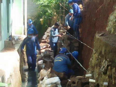 “Perbaikan turap longsor di Saluran Phb Penganten Ali ini melibatkan 15 personel gabungan Satgas SDA dan PPSU. Personel PPSU yang mengaduk coran semen dan Satgas SDA memasang batu kalinya,” tuturnya.