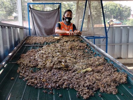 Satpel Sudin Lingkungan Hidup (LH) Kecamatan Pesanggrahan, Jakarta Selatan, melakukan budidaya Maggot dalam upaya mengurangi volume sampah organik yag dibuang ke TPA Bantar Gebang.