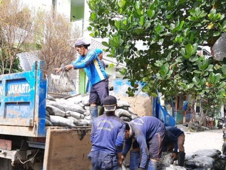 Satpel SDA Tanjung Priok Keruk Saluran di Jalan Swasembada Barat VIII