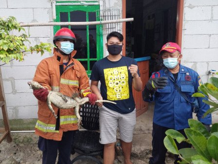 Seekor biawak berhasil dievakuasi petugas Sektor 8 Suku Dinas Penanggulangan Kebakaran dan Penyelamatan (Sudin Gulkarmat) Jakarta Utara dan Kepulauan Seribu dari rumah warga di Jalan Pantai Selatan, RT 02/01, Kelurahan Pulau Tidung, Kecamatan Kepulauan Seribu Selatan.