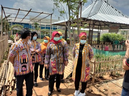 Sekretaris Kota (Sekko) Jakarta Barat, Iin Mutmainah mengunjungi Kelompok Tani (Poktan) Gabung Semua Gang (GSG) RW 07, Kembangan Utara, Kembangan yang merupakan binaan Suku Dinas Ketahanan Pangan, Kelautan dan Pertanian (KPKP) Jakarta Barat.