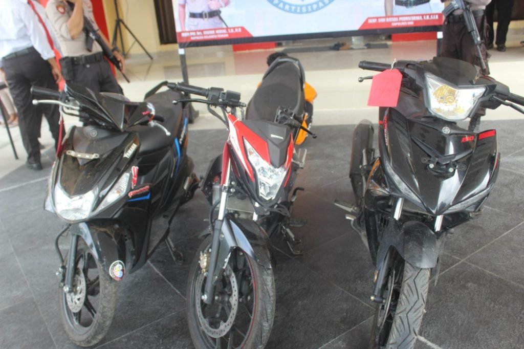 “Dalam aksinya, modus tersangka adalah pura-pura minta tolong ke korban untuk diantar ke tempat tertentu. Namun ketika sampai di tempat sepi, tersangka kemudian mengancam korban menggunakan pisau dan meminta motor korban. Barang bukti yang kami amankan masing masing 1 unit motor Yamaha MX King, 1 unit Yamaha Mio M3 dan 1 unit Honda Sonic. Tersangka disangkakan Pasal 365 Ayat (1) ke 1 KUHPidana Jo Pasal 65 Ayat 1 KUHPidana dengan kurungan penjara sembilan tahun,” tuturnya.