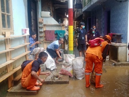 Sepuluh Personel PPSU Bersihkan Sisa Genangan di Kampung Melayu