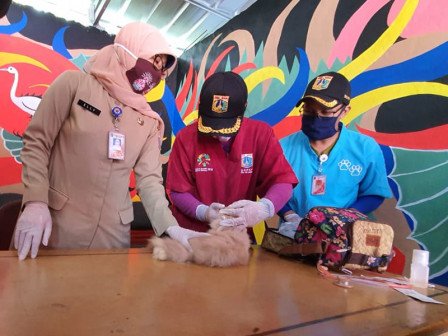 Suku Dinas Ketahanan Pangan, Kelautan, dan Pertanian (KPKP) Jakarta Pusat melakukan vaksinasi pada 58 hewan penular rabies (HPR) di