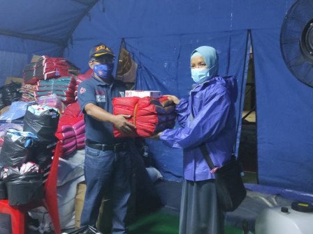 Suku Dinas Sosial Kota Jakarta Timur memberikan sejumlah bantuan bagi warga terdampak kebakaran di Jl Penegak I RT 04/01 Kelurahan Palmeriam, Matraman, Sabtu (27/3) sore. Bantuan secara simbolis langsung diserahkan pada perwakilan warga terdampak kebakaran di tenda pengungsian.