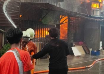 Petugas Suku Dinas Penanggulangan Kebakaran dan Penyelamatan (Sudin Gulkarmat) Jakarta Utara dan Kepulauan Seribu berhasil memadamkan kebakaran hebat yang menghanguskan ...