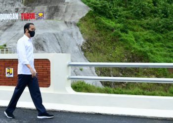 Presiden Joko Widodo pada Minggu, 14 Februari 2021, meresmikan Bendungan Tukul yang berada di Desa Karanggede, Kecamatan Arjosari, Kabupaten Pacitan.