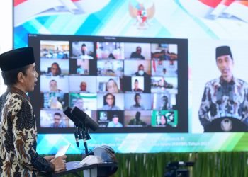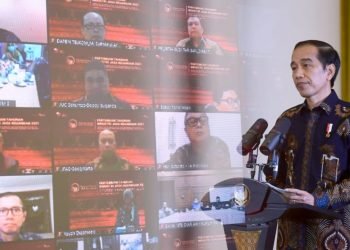 Presiden Republik Indonesia Joko Widodo menghadiri Pertemuan Tahunan Industri Jasa Keuangan Tahun 2021 secara virtual di Istana Kepresidenan Bogor, Jawa ...