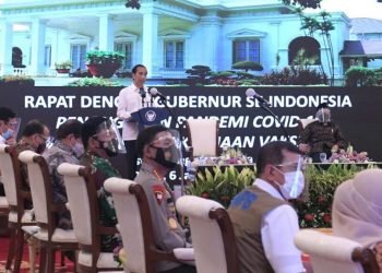Presiden RI memberikan arahan dalam rapat terbatas mengenai penanganan pandemi Covid-19 dan rencana pelaksanaan vaksinasi di Istana Negara, Jakarta, pada ...