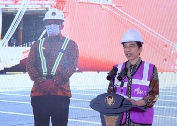 Presiden Jokowi melakukan peluncuran awal sekaligus meresmikan pengoperasian perdana Pelabuhan Internasional Patimban dari Istana Kepresidenan Bogor, Provinsi Jawa Barat, Minggu, ...