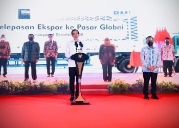 Presiden Jokowi melepas ekspor ke Pasar Global Tahun 2020 secara virtual di Istana Kepresidenan Bogor, Provinsi Jawa Barat, Jumat, 4 ...