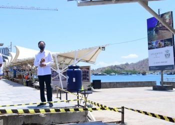 Presiden Joko Widodo meninjau sejumlah pengembangan prasarana yang berada di Kampung Ujung, Labuan Bajo, Kecamatan Komodo dalam kunjungannya ke Provinsi ...