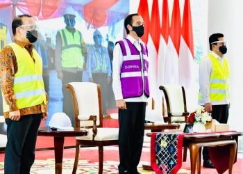 Presiden Jokowi meresmikan jalan tol Manado-Bitung ruas Manado-Danowudu secara virtual melalui konferensi video dari Istana Kepresidenan Bogor, Provinsi Jawa Barat ...