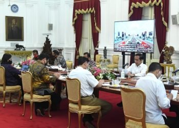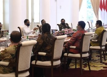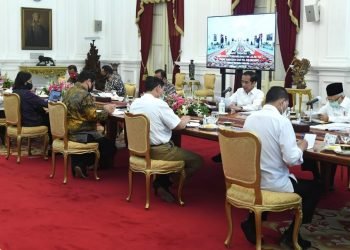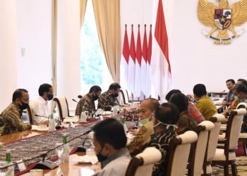Presiden Jokowi memimpin rapat terbatas terkait percepatan pembangunan PSN jalan tol Trans Sumatra dan tol Cisumdawu di Istana Merdeka, Jakarta, ...