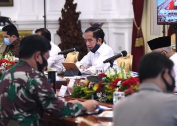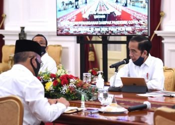 Presiden Jokowi memimpin rapat terbatas yang membahas mengenai percepatan penanganan dampak pandemik covid-19 di Istana Merdeka, Jakarta, 29 Juni 2020.