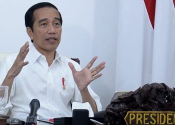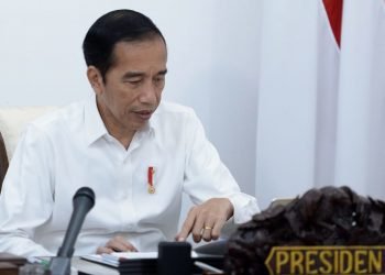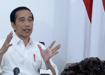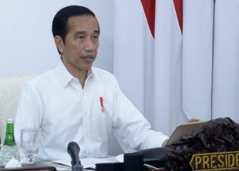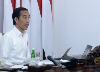 Presiden Jokowi memimpin rapat terbatas mengenai evaluasi Proyek Strategis Nasional untuk pemulihan ekonomi nasional dampak Covid-19 secara telekonferensi dari Istana ...