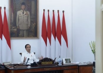 Presiden Jokowi memimpin rapat terbatas mengenai persiapan pelaksanaan Protokol Tatanan Normal Baru Produktif dan Aman Covid-19 melalui telekonferensi dari Istana ...