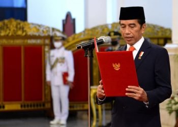 Presiden Jokowi melantik Kepala Staf Angkatan Laut (KSAL) dan Kepala Staf Angkatan Udara (KSAU) di Istana Negara, Jakarta, Rabu, 20 ...