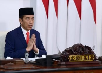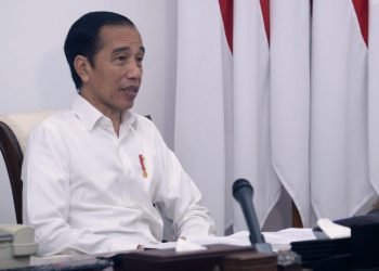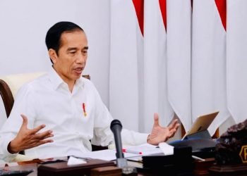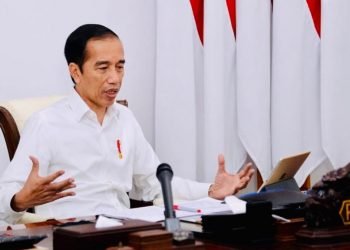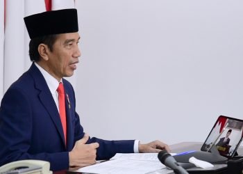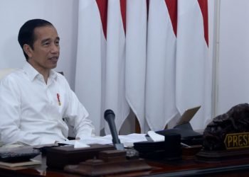 Presiden Jokowi memimpin rapat terbatas terkait penyederhanaan prosedur bantuan sosial tunai dan BLT Dana Desa melalui telekonferensi dari Istana Merdeka, ...