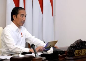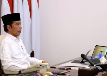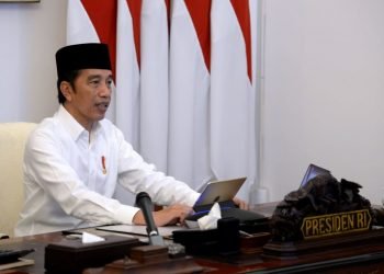 Presiden Jokowi meresmikan Gerakan Nasional #BanggaBuatanIndonesia secara telekonferensi dari Istana Merdeka, Jakarta, Kamis, 14 Mei 2020.