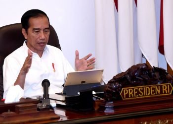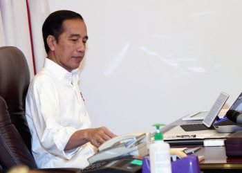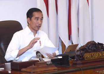 Presiden Jokowi memimpin rapat terbatas mengenai tindak lanjut program mitigasi dampak Covid-19 pada sektor riil melalui telekonferensi dari Istana Merdeka, ...