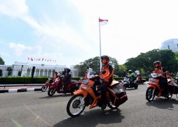 Bantuan sosial bagi 1,2 juta keluarga penerima manfaat di DKI Jakarta mulai disalurkan dari gerbang Istana Merdeka, Jakarta, Senin, 20 ...